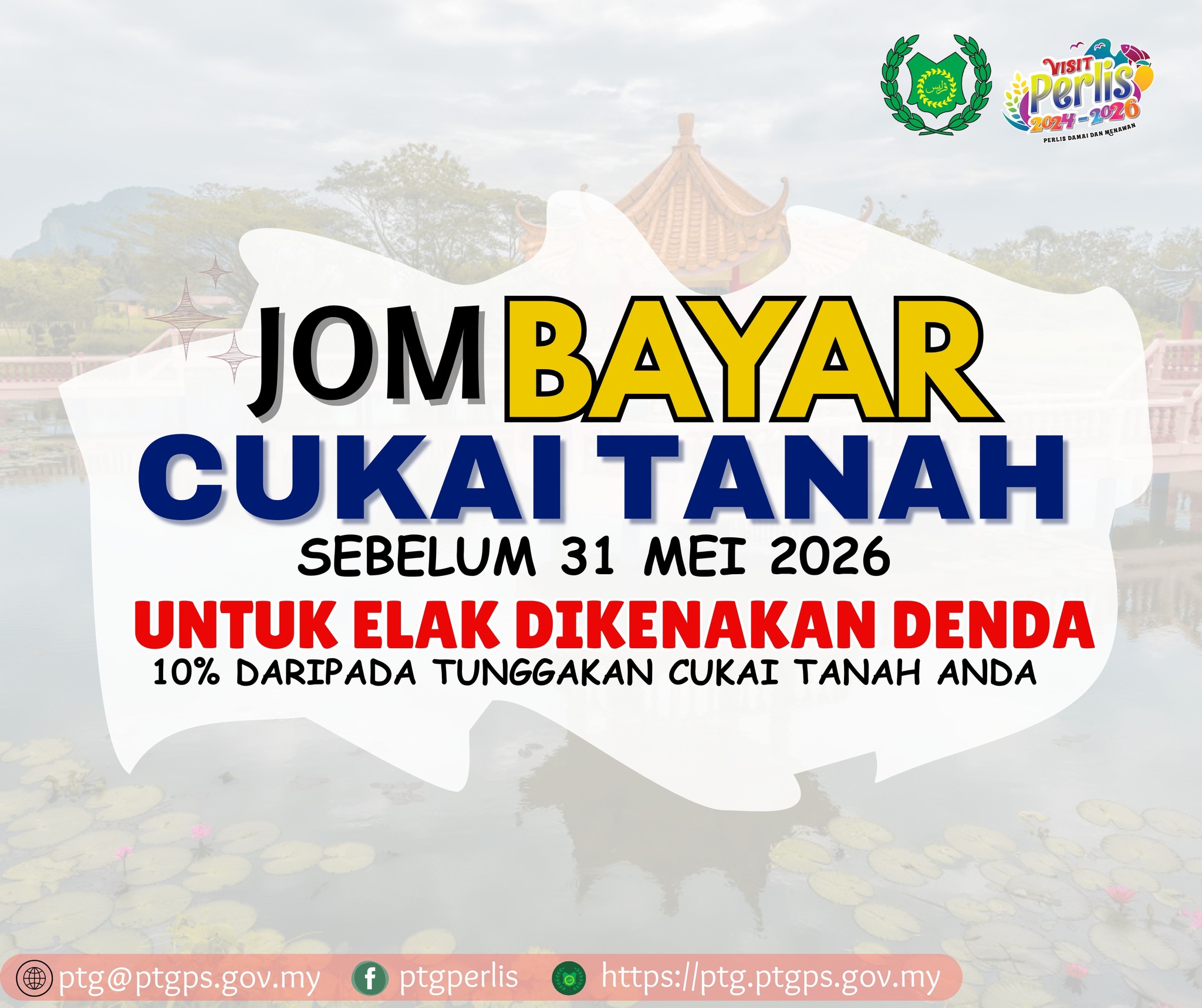 Jika ingin menjemput kami ke tempat anda, boleh emel kami di ptg@ptgps.gov.my - Pelaksanaan Kaedah-Kaedah Tanah Perlis 2024 akan mula berkuatkuasa mulai 1 Januari 2025 di Pejabat Pengarah Tanah dan Galian Negeri Perlis. Pihak tuan / puan boleh mengakses Kaedah-Kaedah Tanah Perlis 2024 melalui pautan berikut : [Klik]